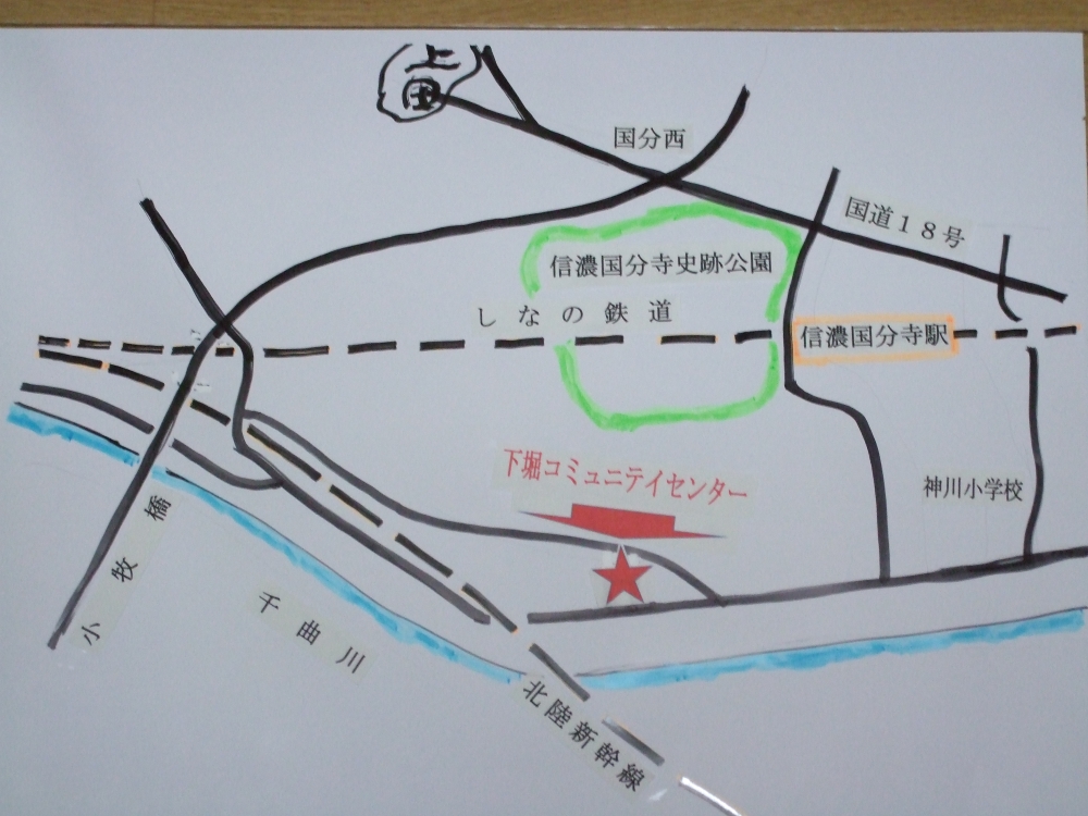 国道18号線国分西の信号を南に、小牧橋北詰信号を左折し、新幹線沿いに行くと下堀コミュニティーの青い看板が左にあり、その駐車場 の正面のアパート1階「のぼり旗」があります。
