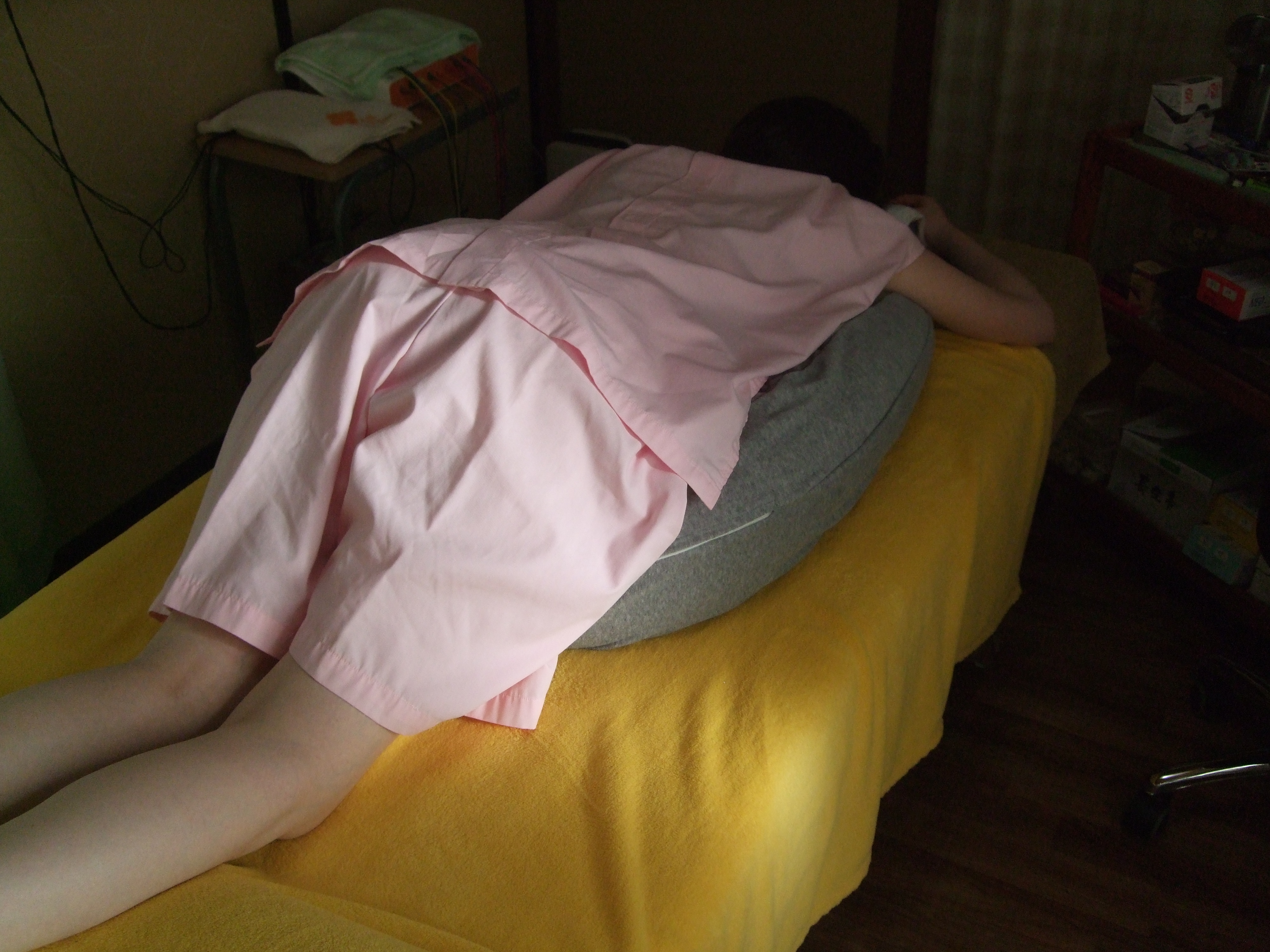 うつぶせまくら 腰部施術(上) うつぶせまくら 姿勢(下)