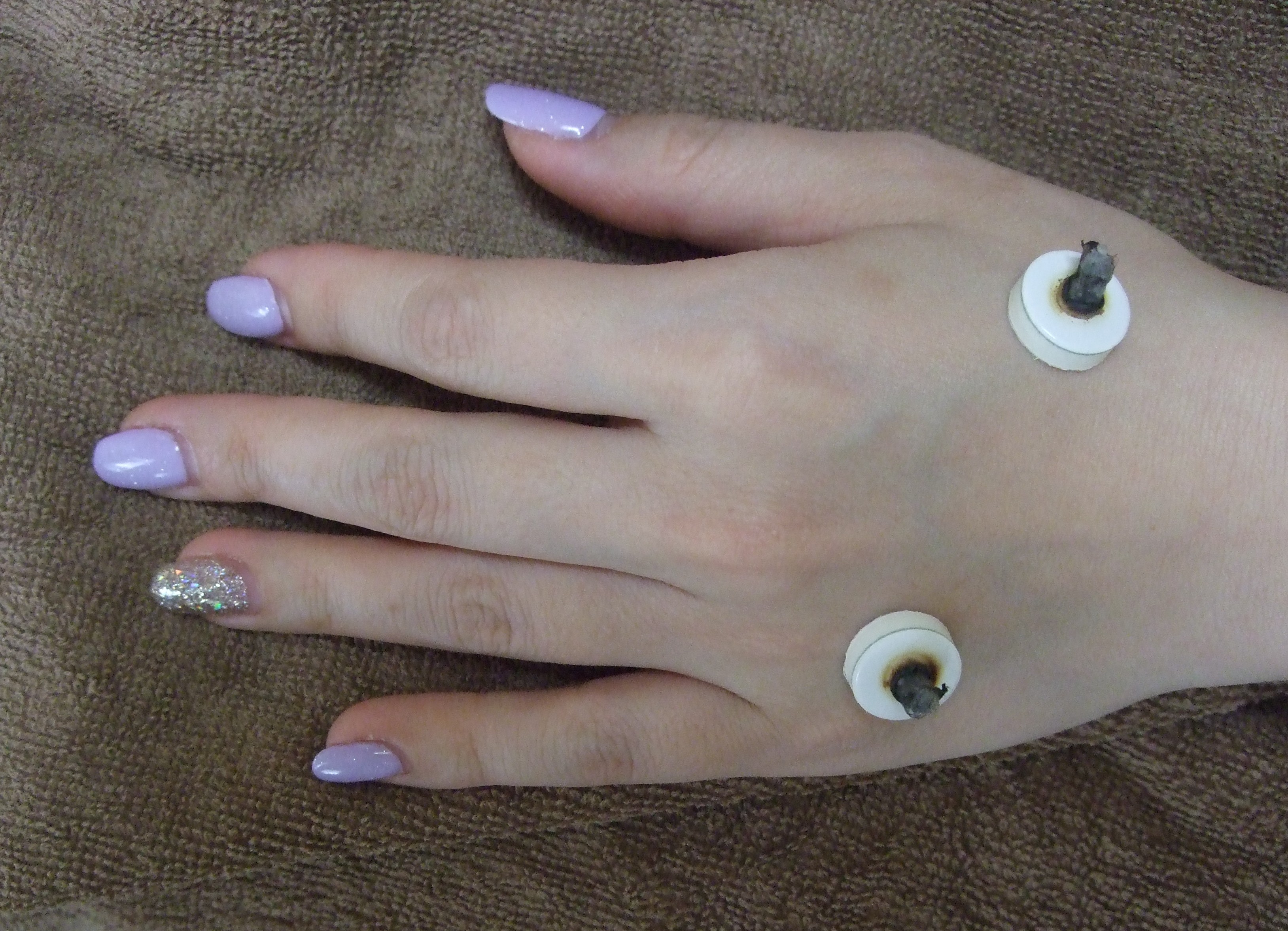 美容灸は、ソフトタイプの台座灸を使用し、ほのかな熱さの浸透を図っています。