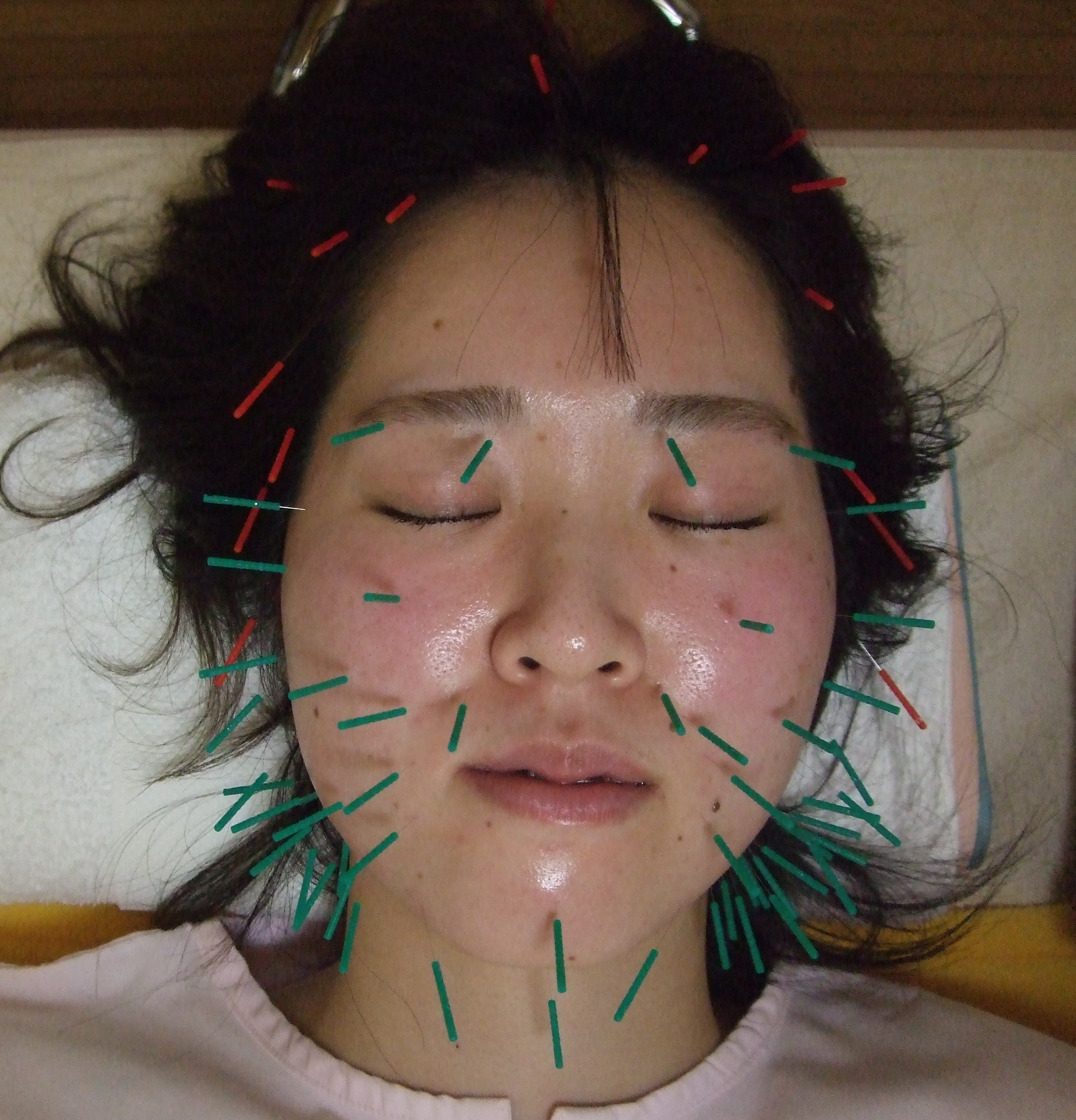 美顔鍼施術(上) 立体造顔美容鍼施術(下)