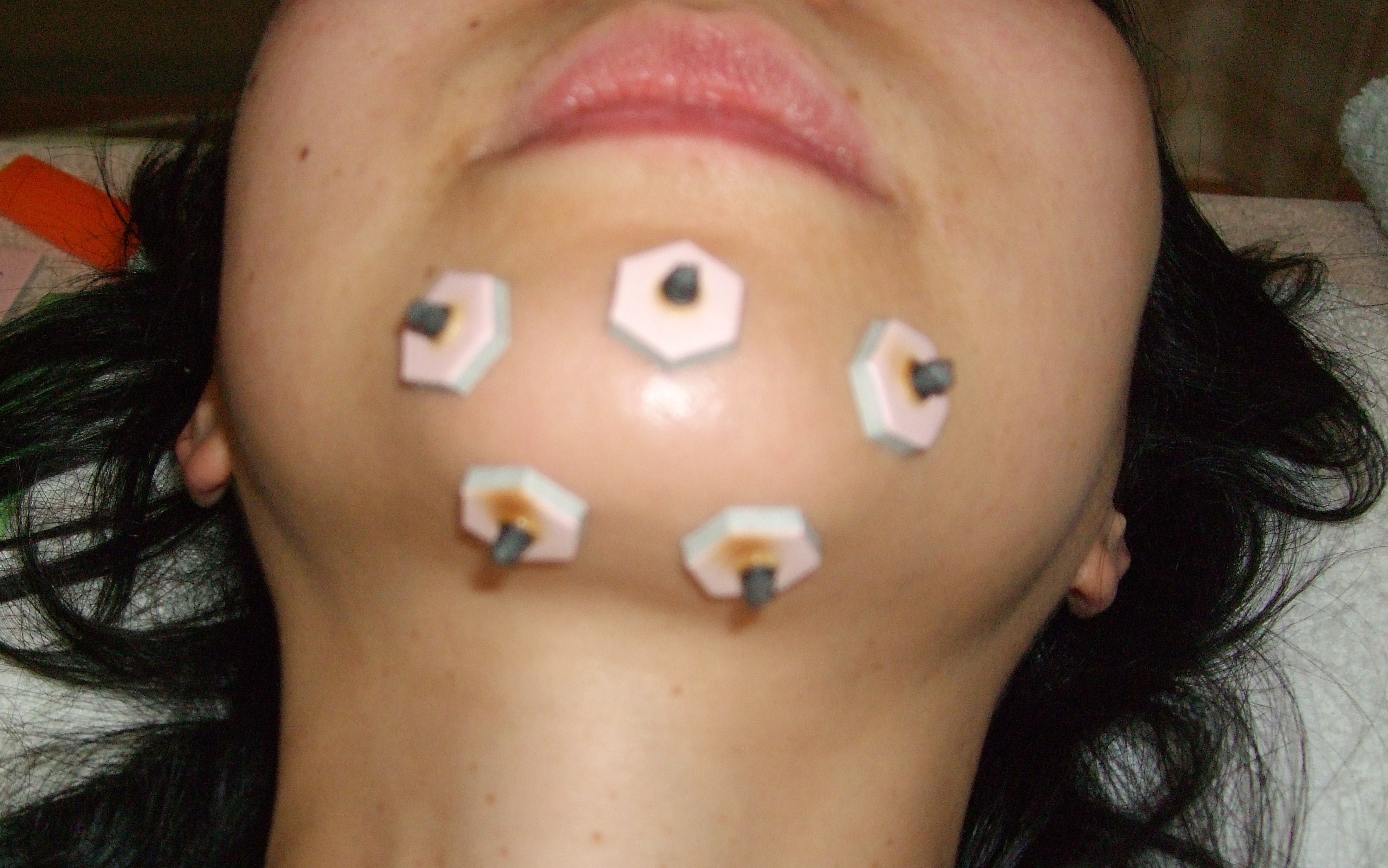 また、美顔鍼を1週間前に施術されたお客様から顎の部分に皮下出血ができてしまい来院されました。まだ1週間程度経過しての事なので、お灸施術で対応した後、1週間後に来院された時は、大分引けていましたが更にお灸施術を行って帰宅されました。