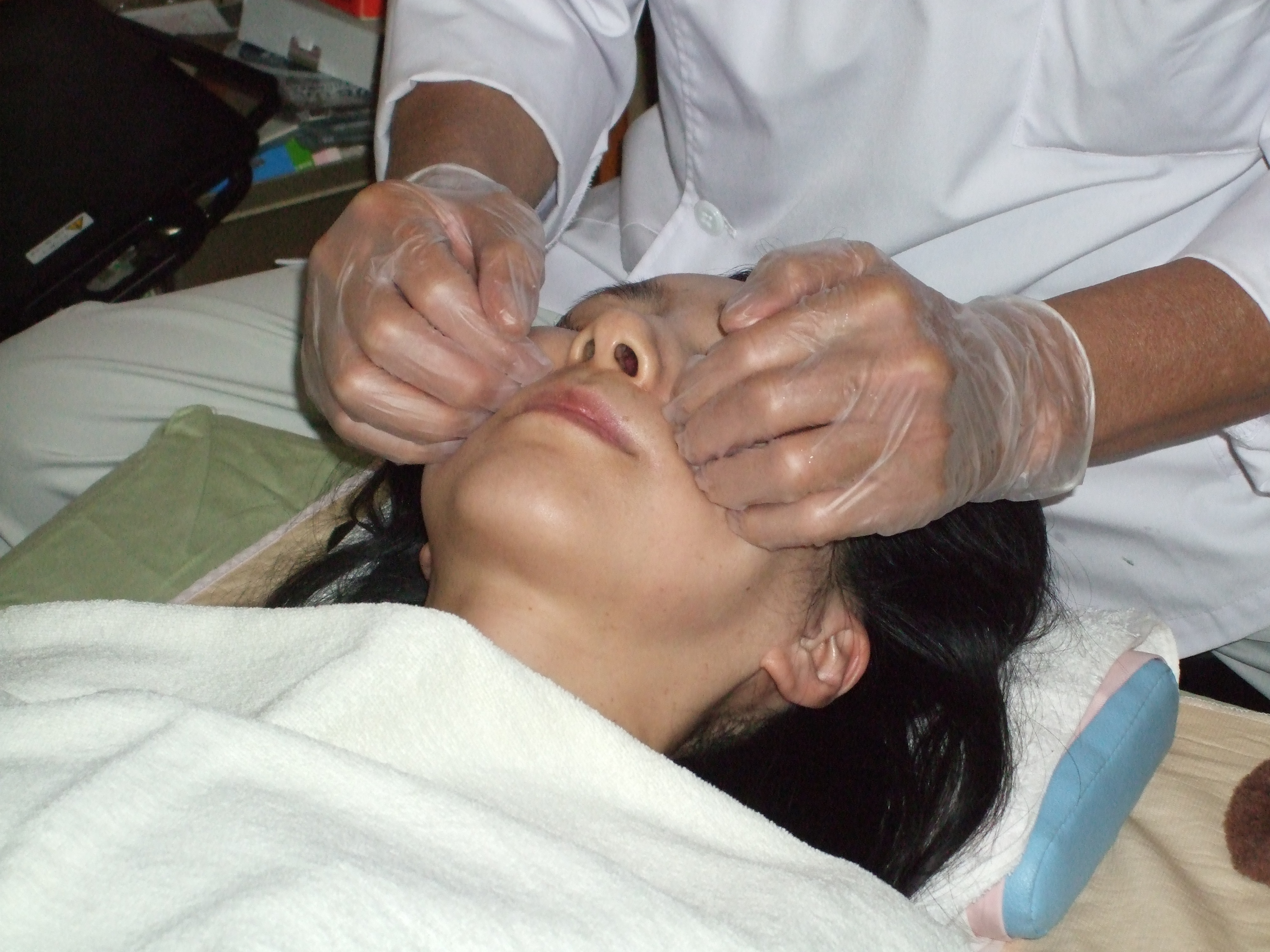 美顔・小顔輪郭整体施術(上) 腸腰筋整体(下)