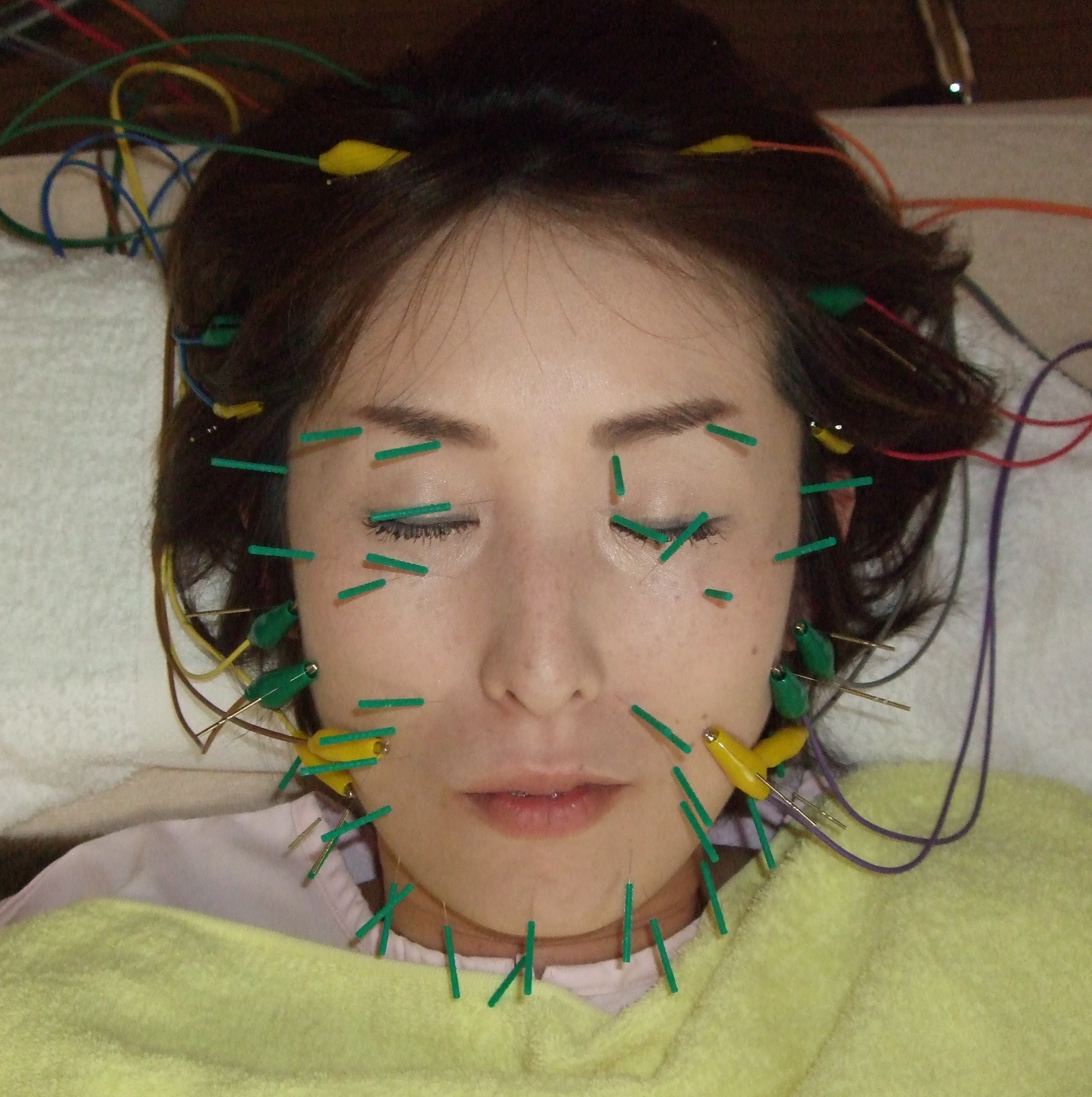 代謝が衰えた肌に鍼刺激並びに効率的に低周波施術器(パルマス)により電気刺激(肌を振動させる)を加える事により、血液やリンパの流れを促進し、肌に、ハリ・潤い・明るさなどを蘇らせていきます。