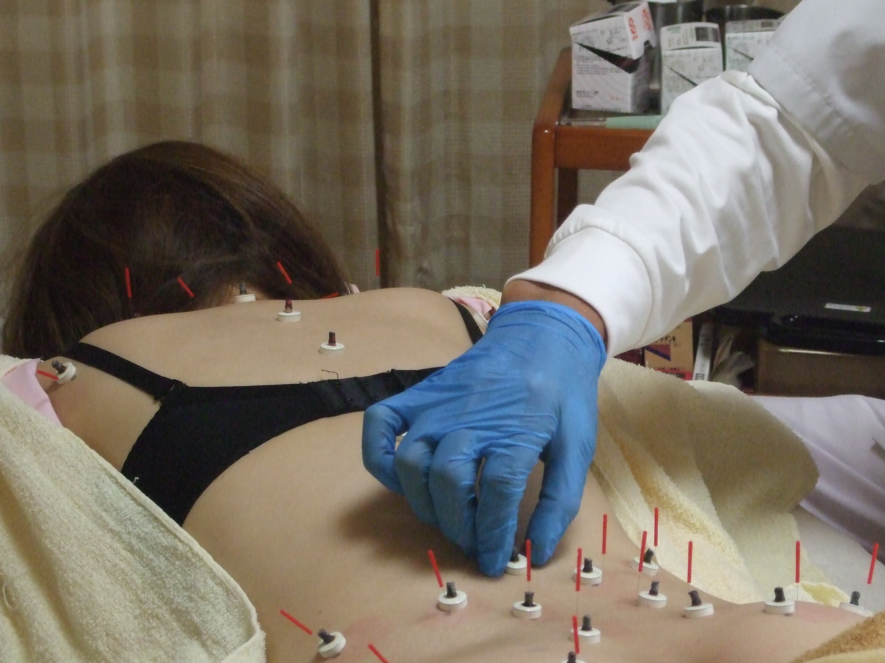 腹部接触鍼施術(上) 背部鍼灸施術(下)