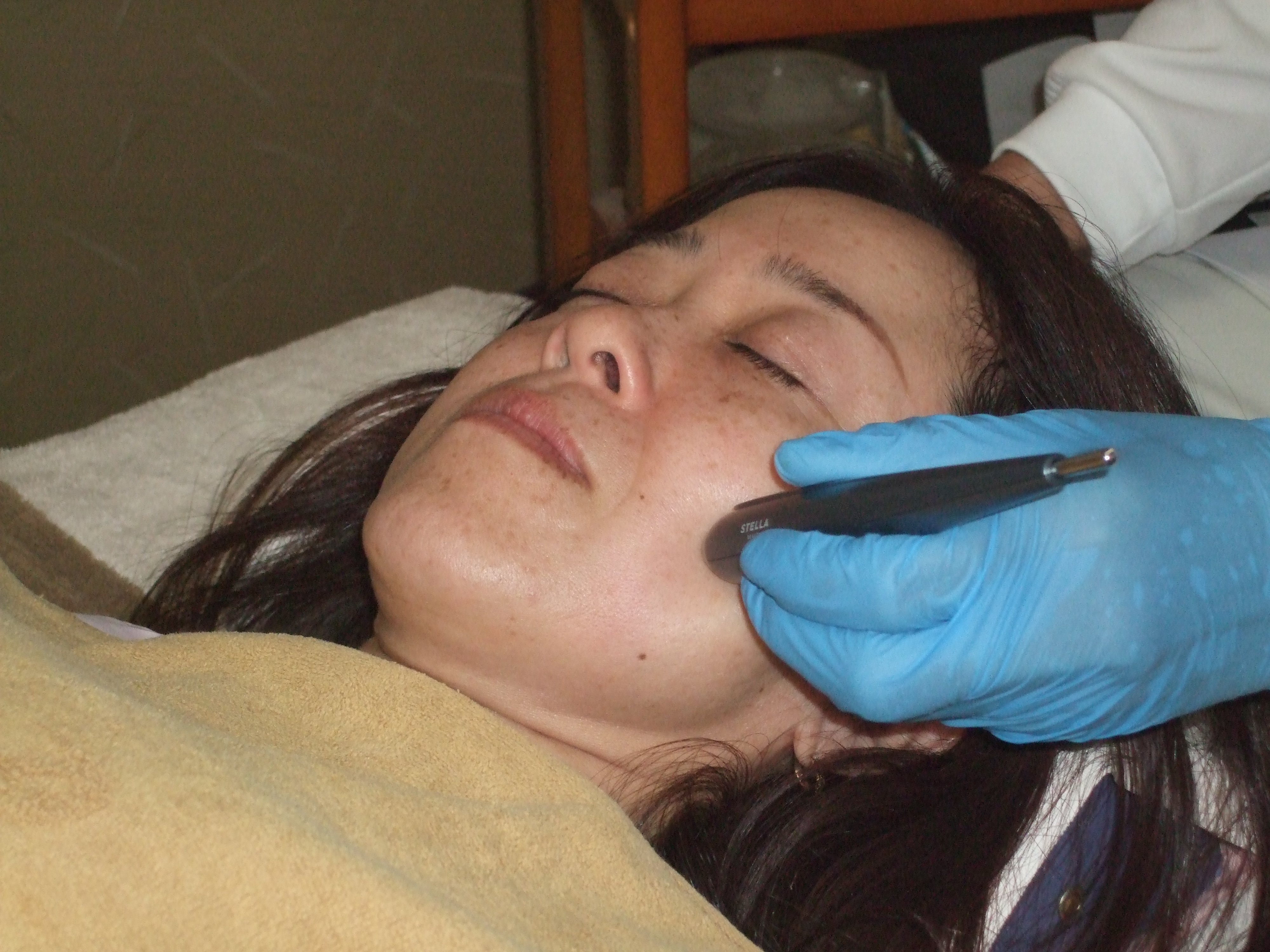 ◆深美光美顔器の体験中です。この機会に使用後のお肌の感じを体験願います。