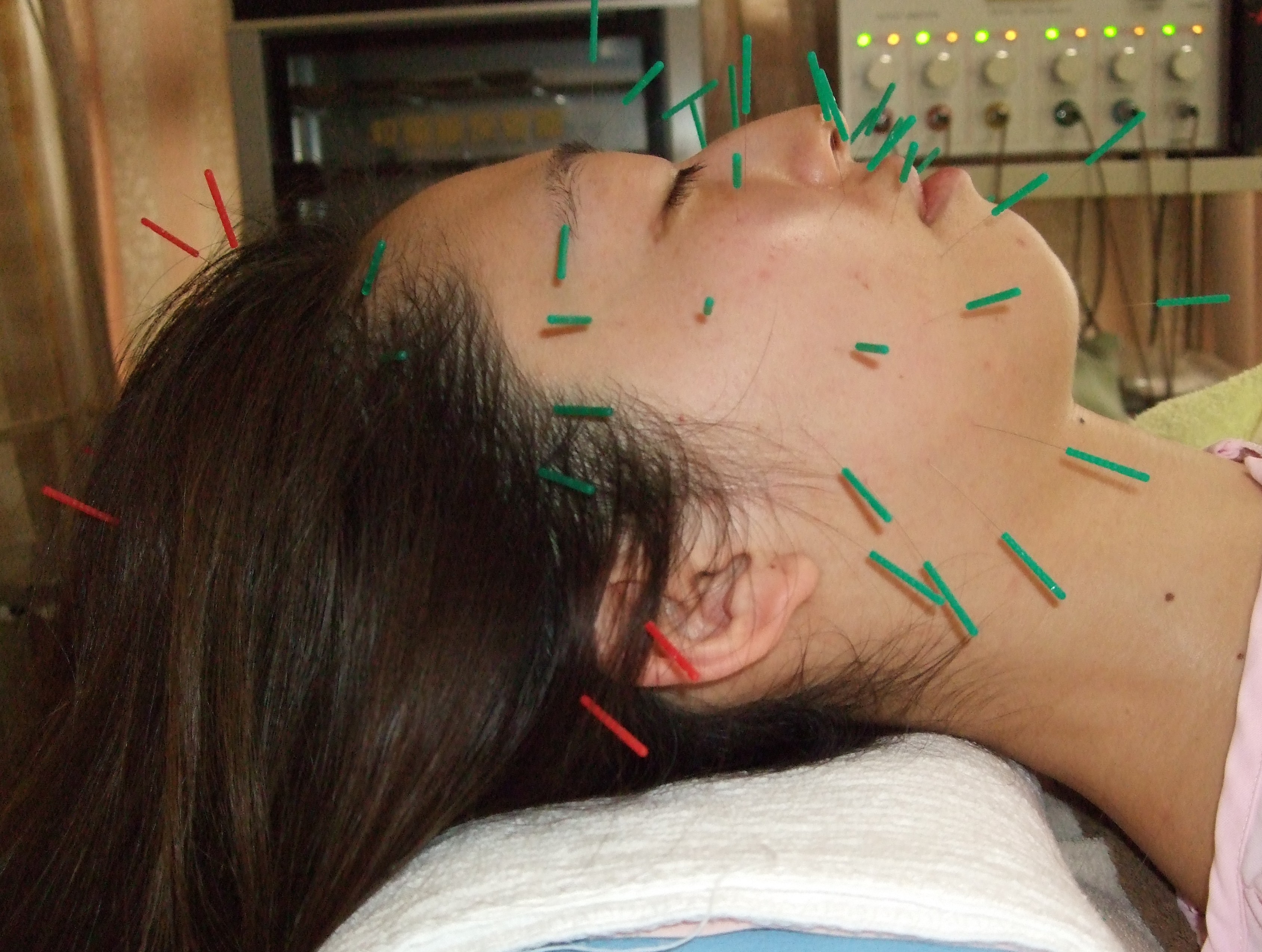 美顔鍼施術(上) 立体造顔美容鍼施術(下)
