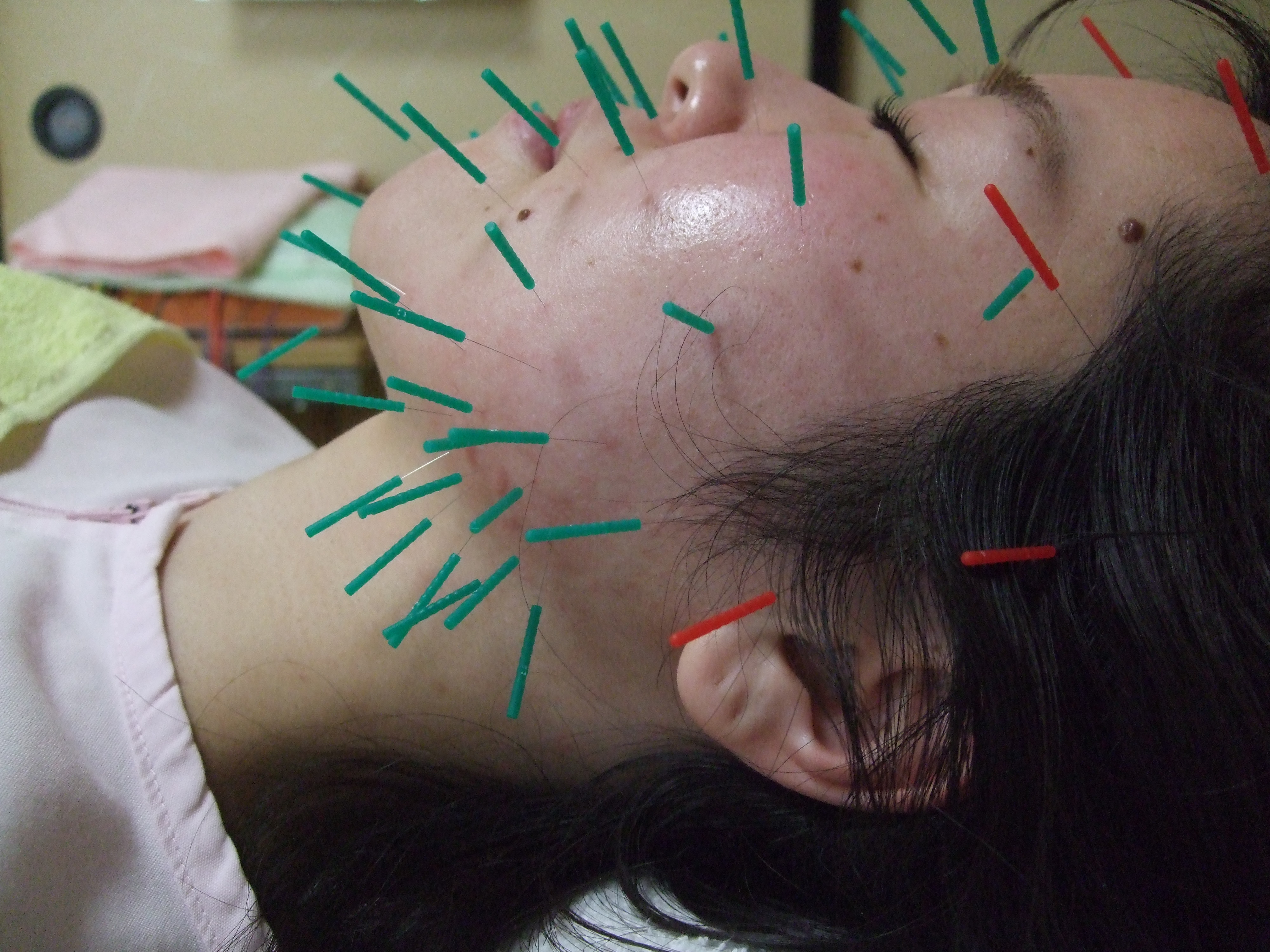 美容鍼施術(上) 美顔鍼施術(下)