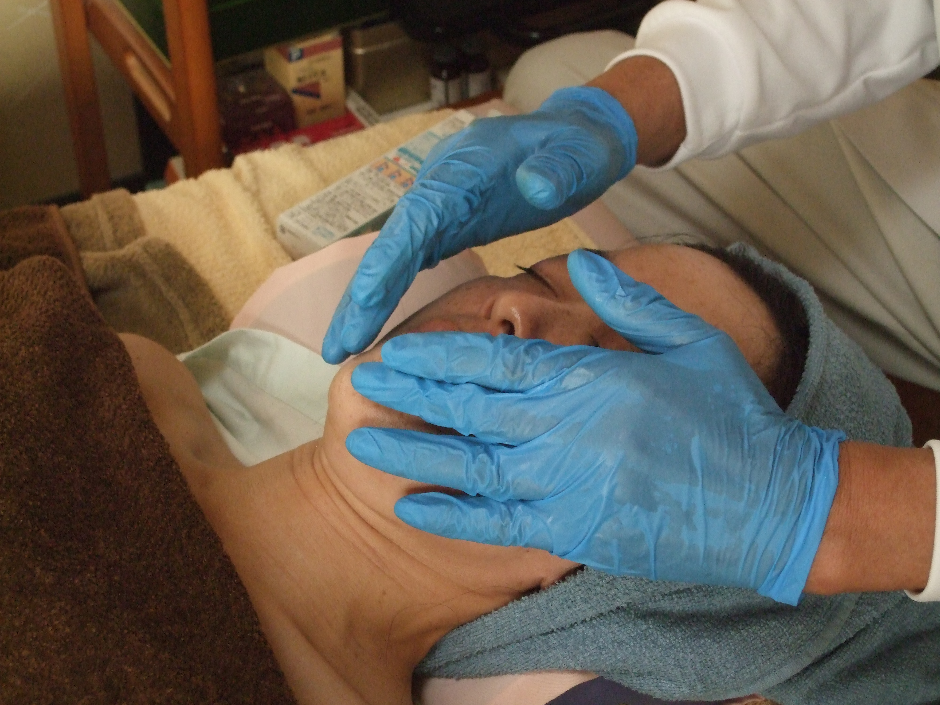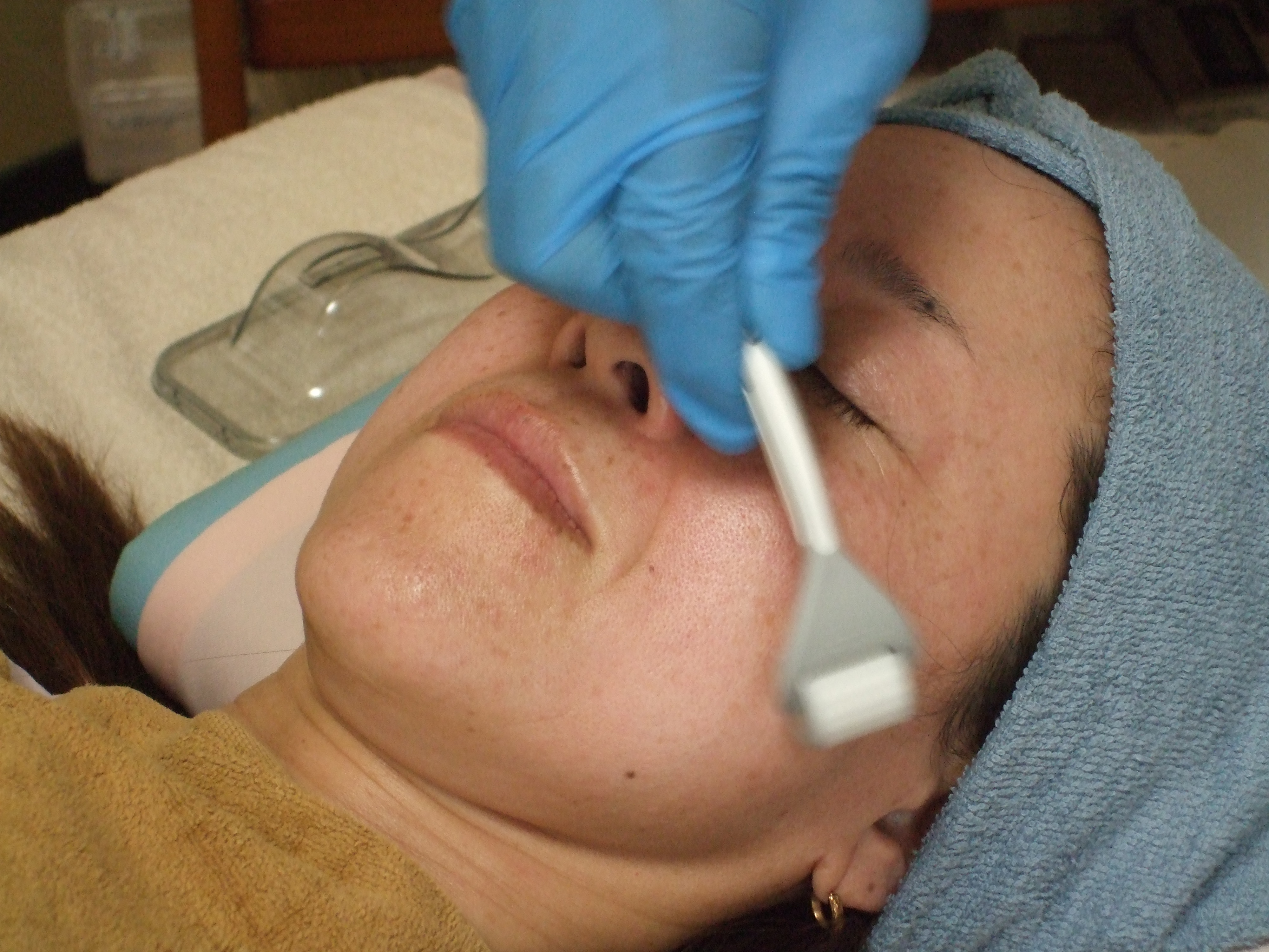 ダーマローラー美容施術(上) ヒト幹細胞培養美容液塗布(下)
